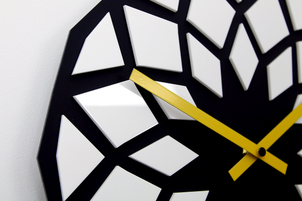 Az órák PMMA akril üvegből készülnek. Ez az anyag modern és esztétikus, könnyű és hatszor erősebb az egyszerű üvegnél. Kitűnő dekorációs kellék, tökéletesen tükrözi a napfényt. Ellenálló az UV sugarakkal szemben és az anyag tulajdonságainak köszönhetően nem igényel különösebb törődést és sokáig megőrzi elsődleges kinézetét.